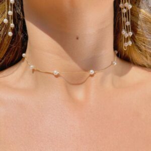Choker com Elos Retangulares Cravejados Banho Dourado