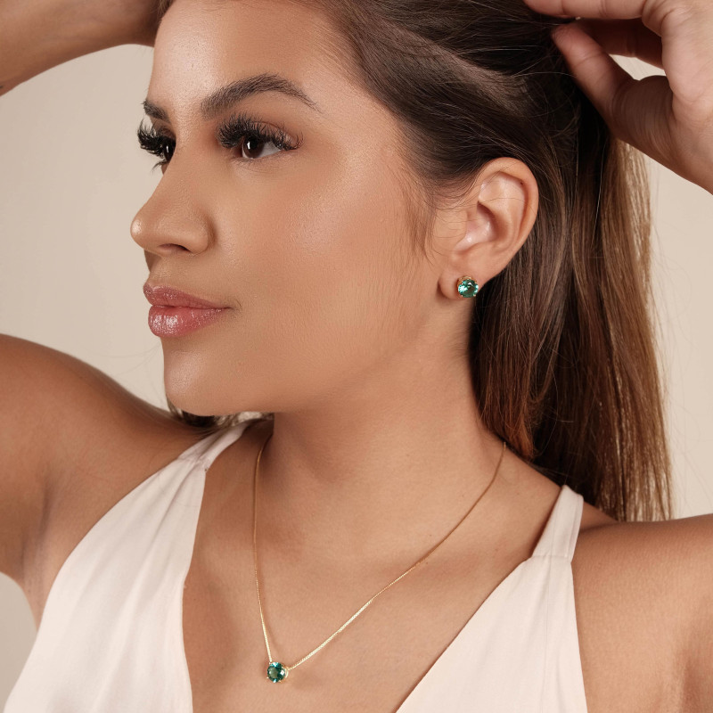 Conjunto Ponto de Luz Turmalina Banho Dourado