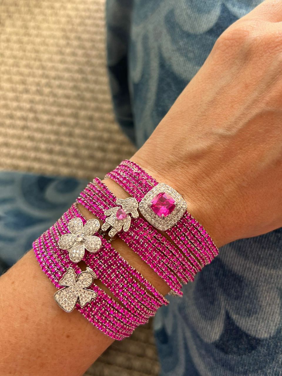 Pingente Cravejado Para Pulseira Quadrado Rosa Pink Banho Branco